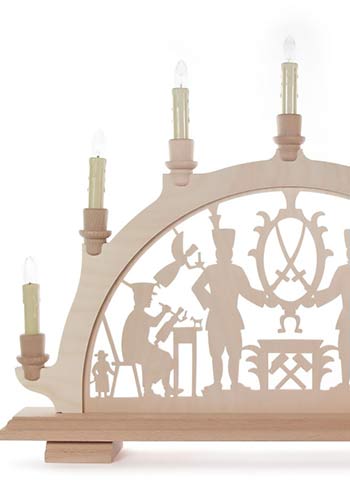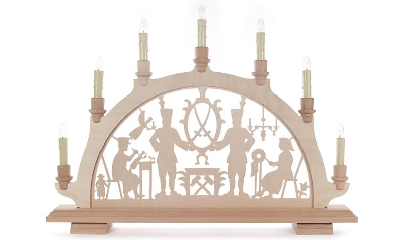 Deze lichtboog Traditioneel Ertsgebergte toont het klassieke motief van de Bergmannen. Dit bekende motief toont, naast verschillende kleine symbolen, twee bergmannen, ofwel mijnwerker, die een Wapen met de Saksische Sabels dragen, een houtsnijder en een vrouw die “Klöppelt”, een vorm van weefwerk. Deze lichtboog belichaamt daarmee de drie belangrijkste bronnen van inkomen van de bevolking in het Ertsgebergte in de 18de en 19de eeuw; Mijnbouw, Houtbewerking en Handwerk kunst.