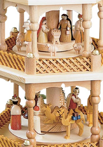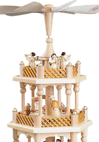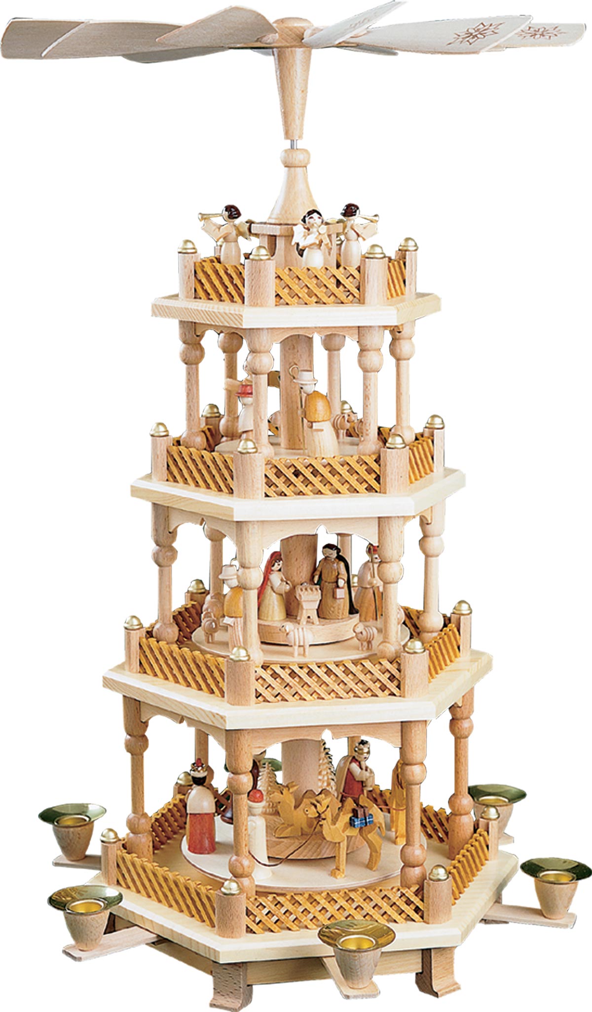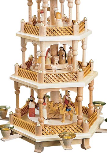 Een sfeervolle een aantrekkelijk geprijsde piramide van vier etages met het kerstverhaal. Deze piramide wordt aangedreven door zes kaarsen.