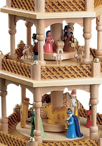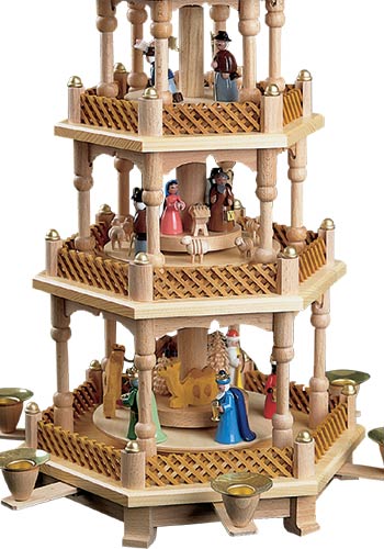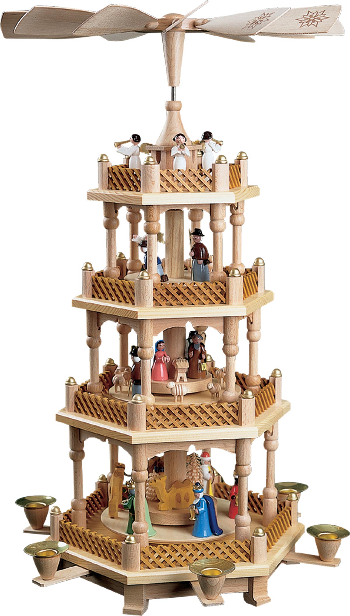 Een sfeervolle een aantrekkelijk geprijsde piramide van vier etages met het kerstverhaal. Deze piramide wordt aangedreven door zes kaarsen.